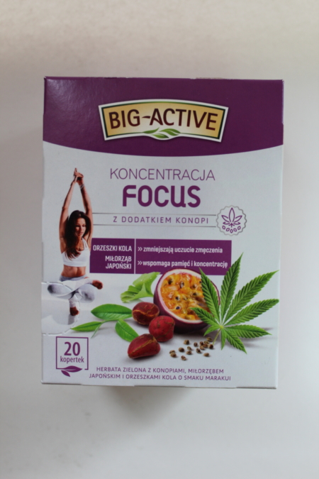 Skład: herbata zielona (60%), orzeszki kola (15%), jabłko, aromaty, liść miłorzębu japońskiego (6%), ekstrakt z nasion konopi siewnych (0,3%), owoc marakui (0,3%)