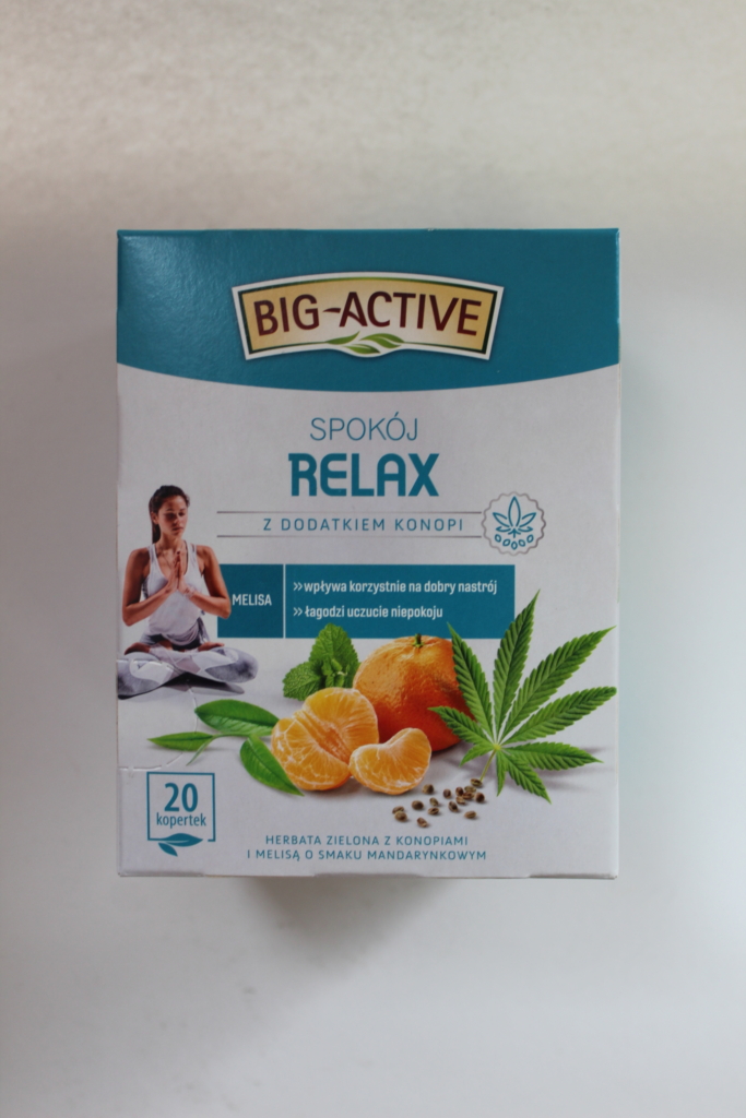 Skład: herbata zielona (70,5%), liść melisy (20%), aromaty, skórka mandarynki (1,5%), ekstrakt z nasion konopi siewnych (0,5%)