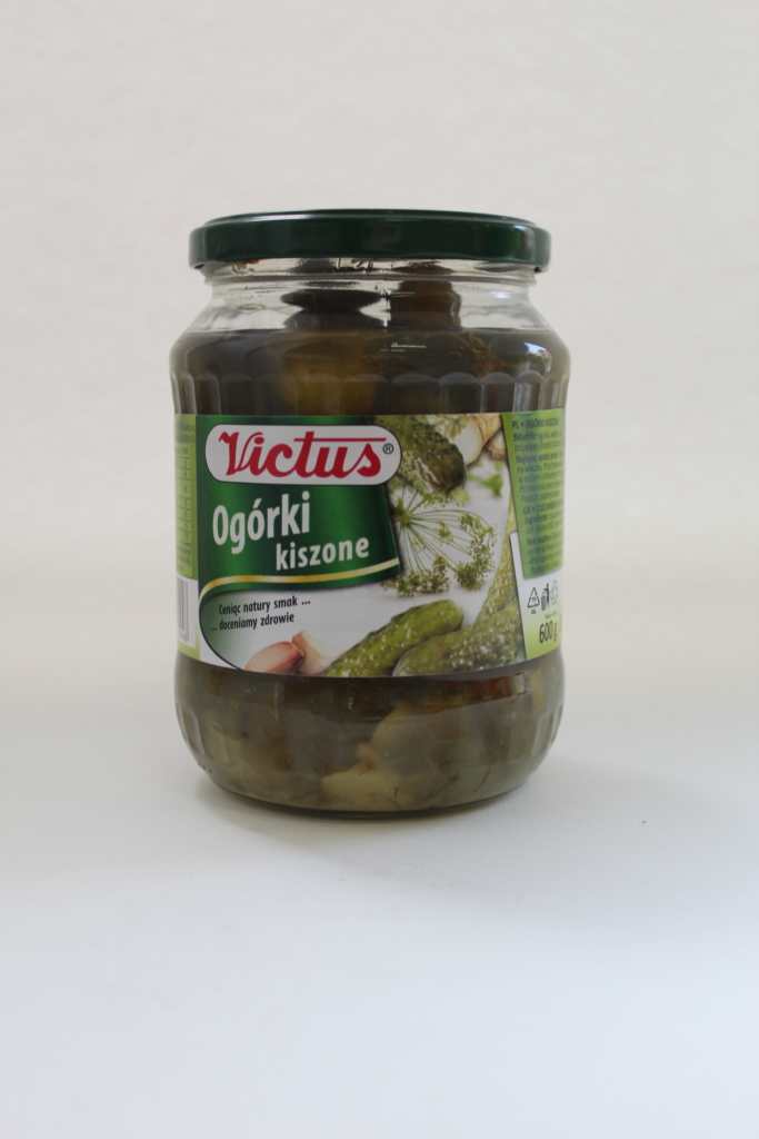 Składniki: ogórki, woda, ocet spirytusowy, cukier, sól, przyprawy (koper, gorczyca, ziele angielskie, liść laurowy.