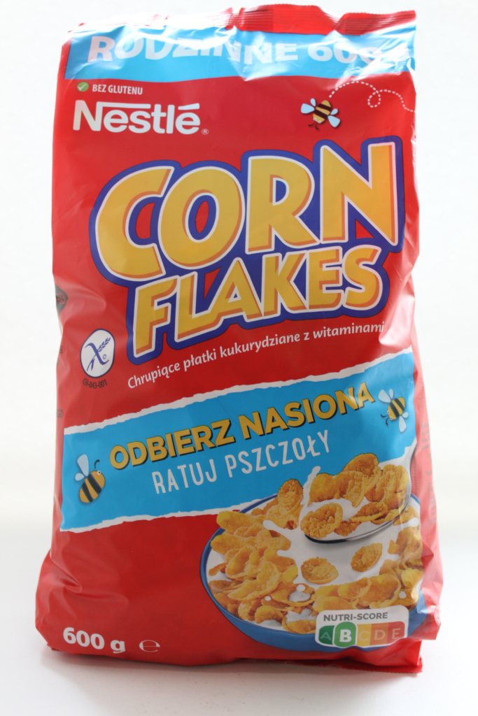 grys kukurydziany, cukier, sól, syrop cukru inwertowanego, melasa, substancje wzbogacające: witaminy (B3, B5, B2, B6, B9)