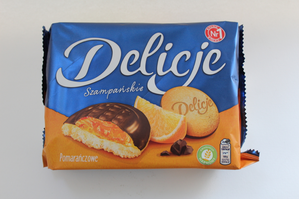 syrop glukozowo-fruktozowy, cukier, czekolada 15 % [cukier, miazga kakaowa, tłuszcz kakaowy, tłuszcze roślinne (palmowy, shea, w zmiennych proporcjach), emulgatory (lecytyny sojowe, E 476), aromat], mąka pszenna, jaja, woda, skrobia ziemniaczana, zagęszczony sok pomarańczowy 1,5 %, substancja utrzymująca wilgoć (glicerol), olej rzepakowy, substancja żelująca (pektyny), regulatory kwasowości (kwas cytrynowy, kwas jabłkowy, cytryniany sodu), sól, aromaty, substancja spulchniająca (węglany amonu), emulgator (E 471), barwniki (karoteny), odtłuszczone mleko w proszku