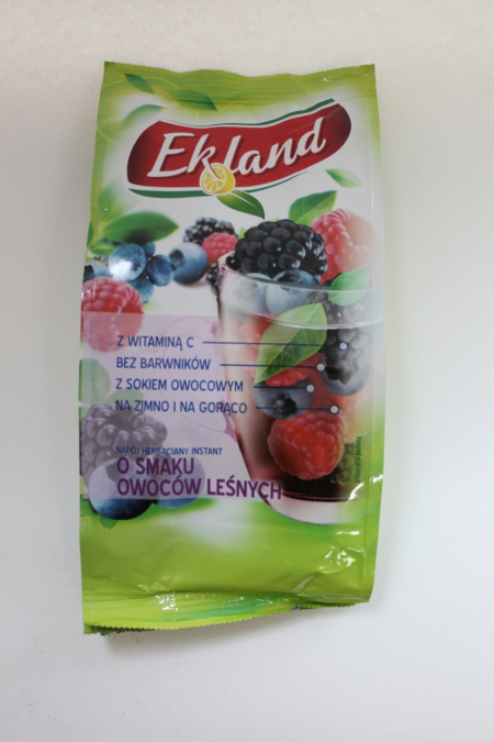 Składniki: cukier, glukoza, regulatory kwasowości: kwas cytrynowy; zagęszczony sok z aronii 0,9%, ekstrakt herbaty czarnej 0,35%, sok wieloowocowy w proszku 0,1% (maltodekstryna, zagęszczony sok owocowy), witamina C, aromat. Może zawierać mleko, soję i ich produkty pochodne.