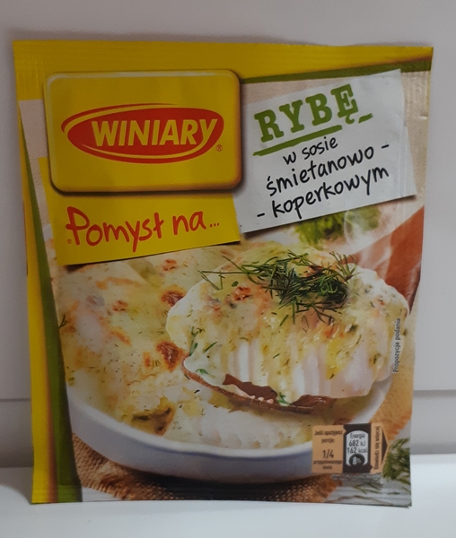 Winiary pomysł na rybę w sosie śmietanowo-koperkowym Winiary kruidenmix voor vis in roomsaus met dille